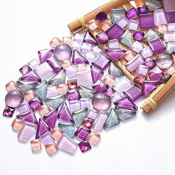 1.1LB Mixed Color Irregular Crystal Mosaic Tiles, Tiny Mini Mosaic Tile DIY Hobbies Children Handmade Crystal Craft for Craft Bathroom Kitchen Home Decoration DIY Art Projects (Purple Series - New)