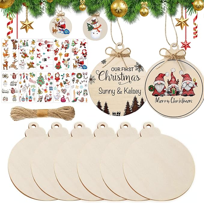 • ❤ DIY Crafts - Use your imagination and enjoy DIY with your family or friends. This creative and personalized Christmas wooden circle craft can be used as Christmas ornaments or hung on the Christmas tree after DIY. Our natural wooden circles are plentiful and sturdy in quality, so you can DIY painting or use sticker them to suit your own and your family's mood.