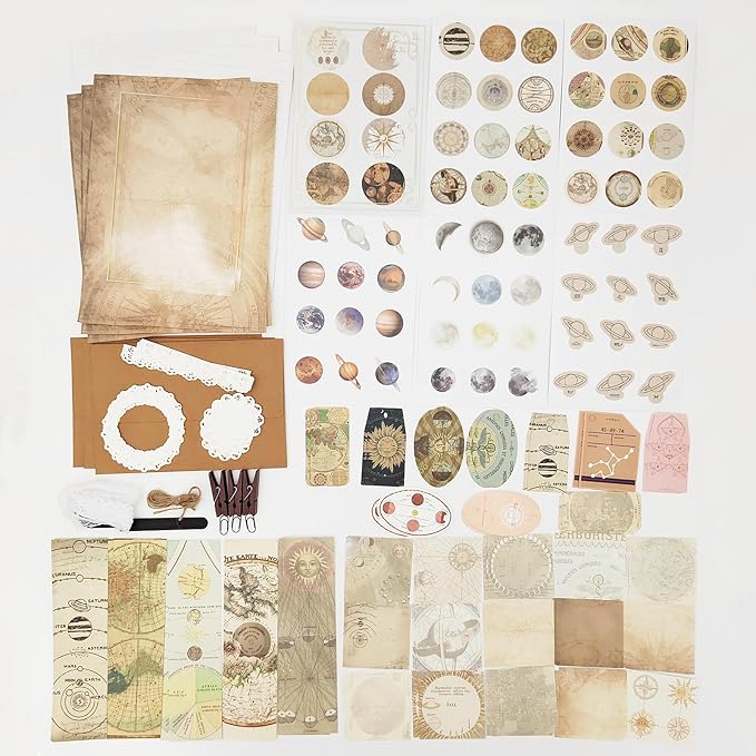 251PCS Vintage Scrapbook Supplies Pack, Scrapbooking Paper and Stickers Ephemera Bundle Junk Journal Kit for Art Aesthetic Journaling Collage Decoupage Craft (Space)