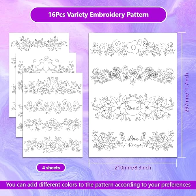 • Package Included: You will get 4 sheets of A4 paper size embroidery patterns stabilizers, there are 16 kinds of beautiful embroidery patterns, including a variety of flowers vine lace and so on, suitable for people who like flowers and embroidery, come to use your creativity to make one-of-a-kind embroidery works.