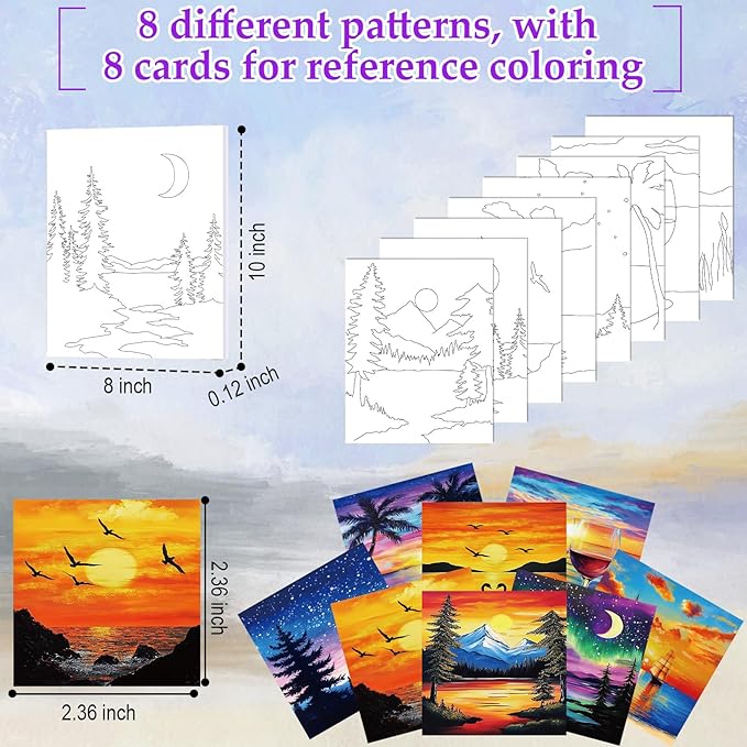 • Reference Matching Cards: you can doodle by following the reference cards provided, and you can explore different color schemes and hues; After the painting is finished, it can be given to friends as a gift, or these canvas paintings can instantly transform your room into an art gallery, can be displayed at home as an ornament