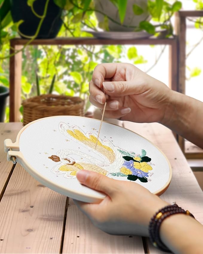 TINDTOP 3 Pack Embroidery Kit for Adult Beginners, Embroidery DIY Starter Kit, with Swan Stamped Patterns, Hoop, Tools, Colorful Threads with Needles, Instructions