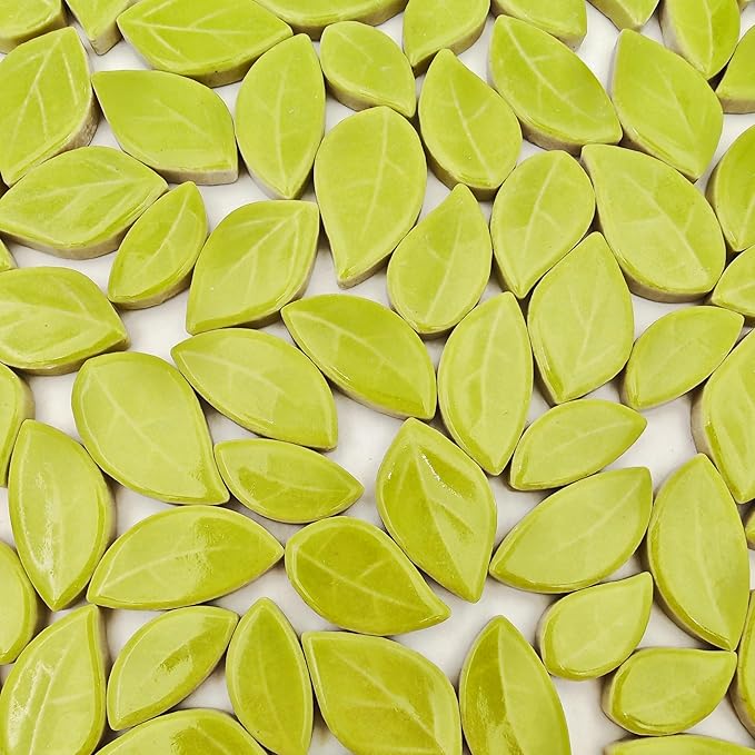 500g/1.1lb Leaf-Shaped Ceramic Mosaic Tiles,Ceramic Mosaic Pieces for Crafts,Mosaic Tiles for Home Decoration or DIY Crafts,Mosaic Making Supplies. (Yellowish Green)