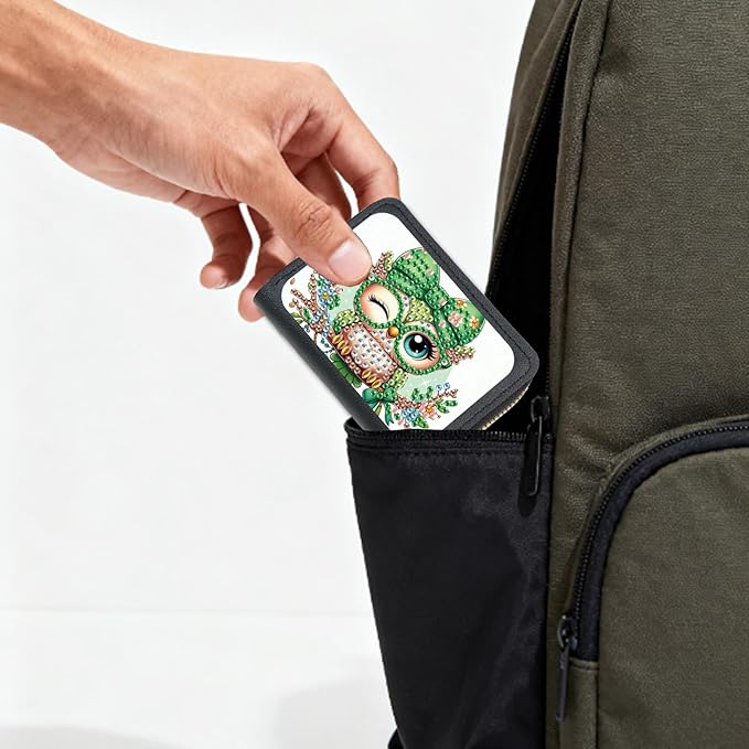 • Diamond Painting Credit Card Wallet—The diamond painting card case has 9 card slots and 2 change slots, providing ample space. Multiple expandable pockets of diamond painting card storage are arranged in an accordion-like format to neatly organize the cards, ensuring they are separated and easily accessible. This diamond painting wallet can hold multiple cards and maintains a slim shape, making it easy to fit into a purse or pocket. The zipper design ensures that the card won't come out