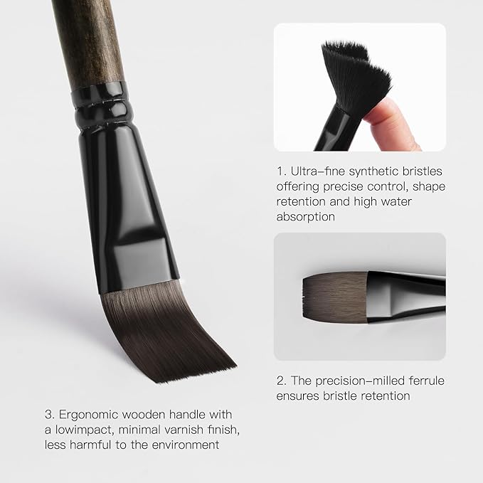 • High-Quality Synthetic Bristles: The soft synthetic bristles are great for load capacity and control of colors, consistent smooth flow of paint. while maintaining excellent elasticity and shape retention. Sturdy enough not easy to bend or split with pressure. They are easy to clean, rinse and look as good as new, making them suitable for long-term use.