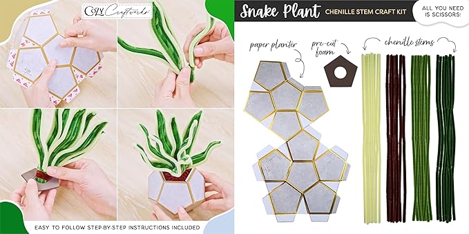 WeVeel Cozy Craftworks Chenille Stem Plant Craft Kit for Adults – Create 4 Botanical Designs (String of Pearls, Snake Plant, Cactus & Mushroom) – Relaxing DIY Arts & Crafts Kit with All Supplies