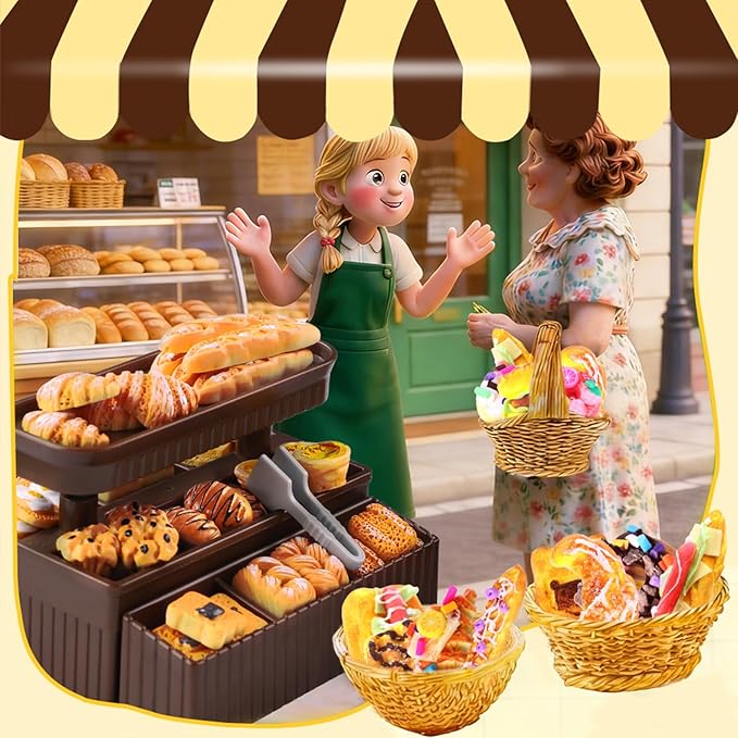 • Super Value Mini Baking Craft Kit: Includes 100g air-drying resin clay, 2 silicone bread moulds, 2 gradient colour palettes, 5 simulated jam shades, 4 bottles of decorative sauce, disposable gloves, instruction manual, plus an accessory pack containing display cabinet, counter, cash register, resin mini bread models, trolley and more. Also includes precision sculpting tools, shaping moulds, and detailed accessories. Simply mould and shape, then air-dry naturally to create lifelike miniature bread rolls, baguettes, buns, or croissants. No baking required, no messy hands , just pure creative enjoyment!